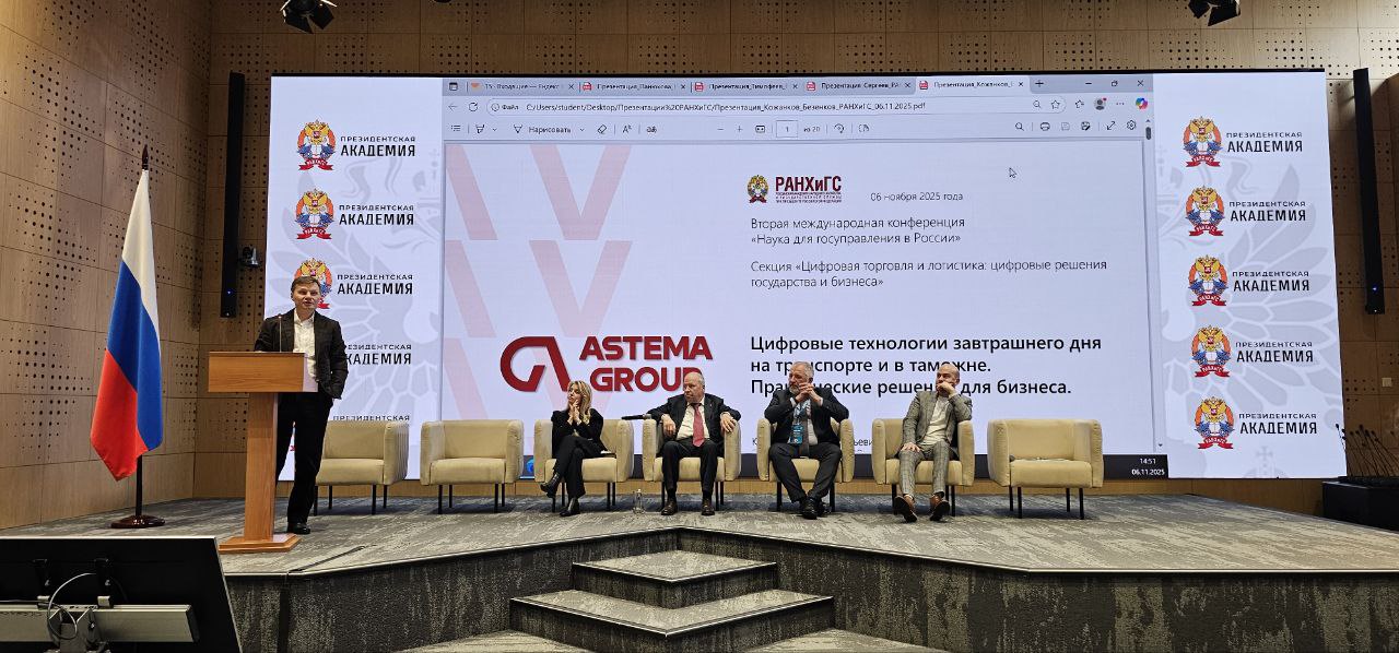 The conference included a section entitled “Digital Trade and Logistics: Digital Solutions for Government and Business,” at which Anton Kozhankov, CEO of Astema Group LLC, and Anton Bezhanov, CEO of Astema Group LLC, gave a joint presentation on "Cross-border Transactions. Digital Technologies of Tomorrow in Transport and Customs. Practical Solutions for Business."